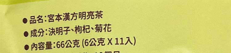 | 內容物(成分) | 決明子、枸杞、菊花 |