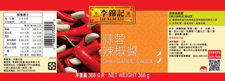 | 其他詳細說明 | 蒜蓉辣椒醬精選醃製辣椒和香乾蒜,採用黃金配比,秘法調製而成。蒜香濃郁,辣味清新,蒜辣融合協調,更能襯出食材原有的鮮香美味。複合風味配方的特色,只要一款李錦記辣椒醬,即能令菜式口味層次豐富,快速調味。不加味精*、人工色素、防腐劑,乃植物五辛素製品,信心之選。 用法︰適用於蘸點及爆炒肉類、拌食蔬菜、麵食、調味湯底等,如蒜蓉辣椒醬蒸扇貝、蒜蓉辣椒醬炒雞丁河粉、蒜蓉辣椒醬辣炒茄子。 |