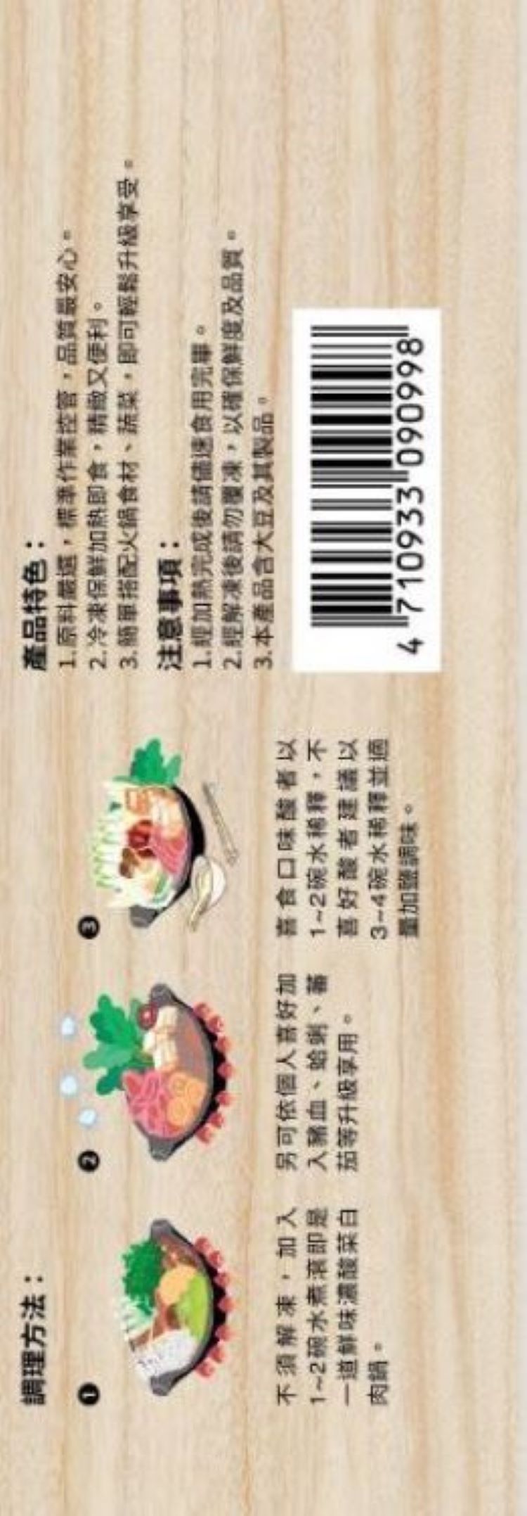 | 商品說明 | 1.原料嚴選,標準作業控管,品質最安心 2.冷凍保鮮加熱即食,精緻又便利 3.簡單搭配火鍋食材蔬菜,即可輕鬆升級享受 |
