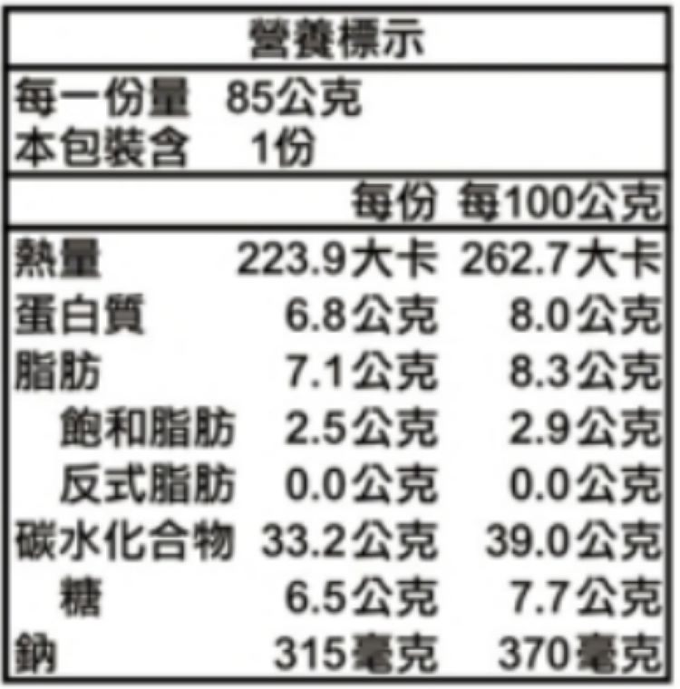| 過敏源註記 | 本產品含麩質之穀物、蛋、魚類,並與其它含有牛奶、大豆、芝麻、堅果、蕎麥、種子類、花生的產品於同一工廠生產,食品過敏者請留意。 |