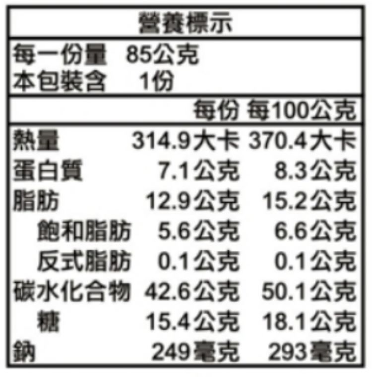 | 製造廠商 | 金禾麥食品股份有限公司 088200038 桃園市蘆竹區錦華路84-1號 週一至週五08:30-16:30 |