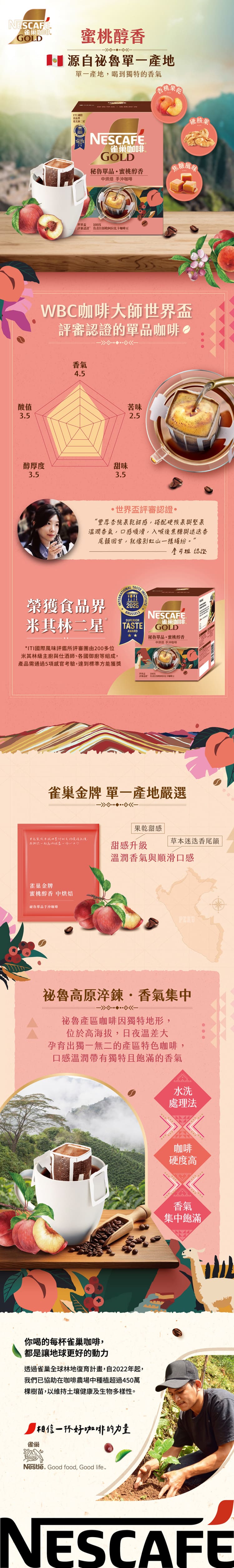 雀巢金牌蜜桃醇香秘魯單品手沖咖啡 8g*8入