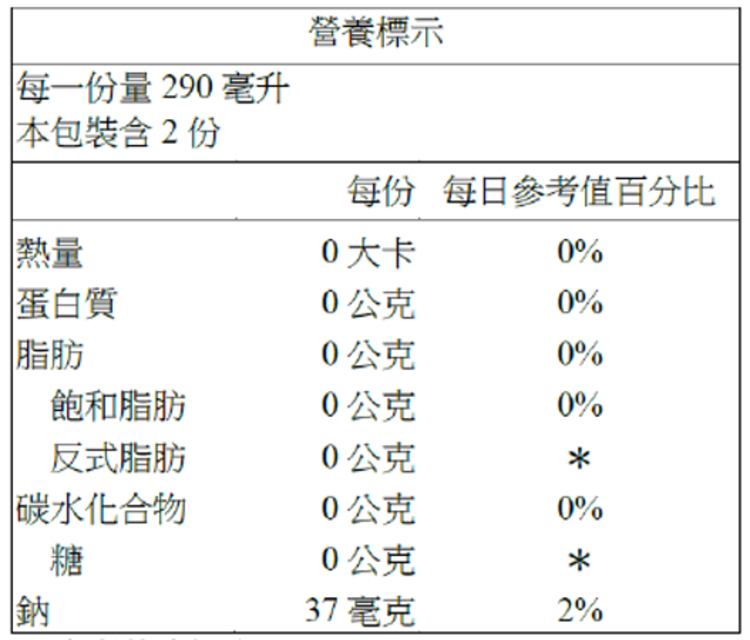 | 食品添加物名稱 | 香料、L-抗壞血酸鈉(抗氧化劑)、小蘇打、脂肪酸蔗糖酯 |