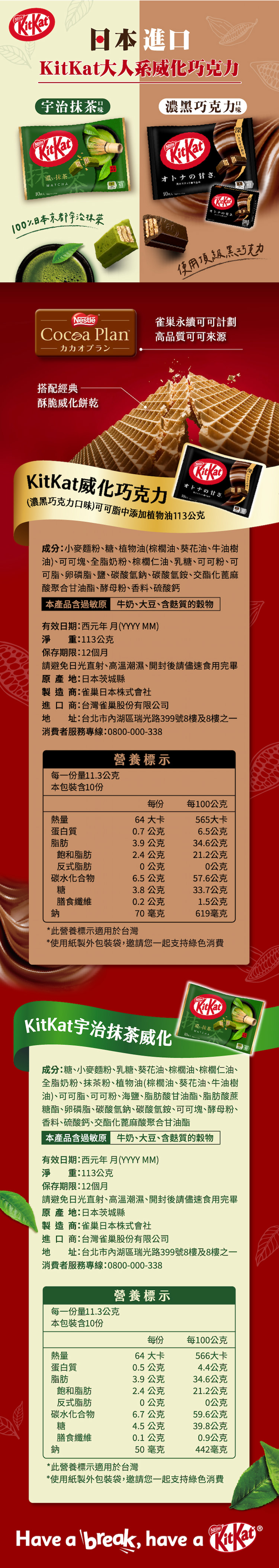 KitKat奇巧威化巧克力-宇治抹茶 113g