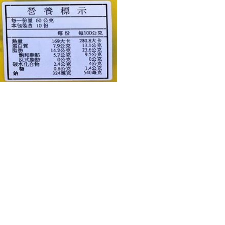 | 製造廠商 | 慶豐食品廠 05-7885152 雲林縣元長鄉西莊村西庄68-8號 週一至週五08:00-17:00 |