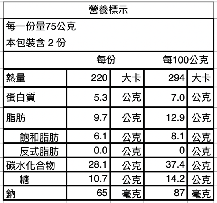 | 過敏源註記 | 本產品含有蛋、牛奶、大豆、花生、含麩質之穀物及其製品 |