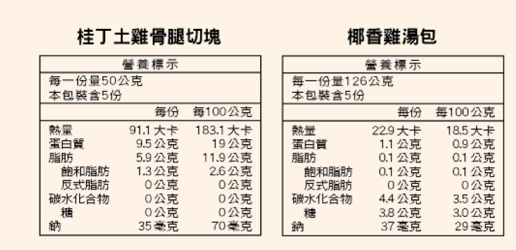 | 內容物(成分) | 雞肉、水、雞高湯(水、雞)、椰子水、椰子肉、紅棗、鹽、昆布抽出物、糖、枸杞、薑母粉 |
