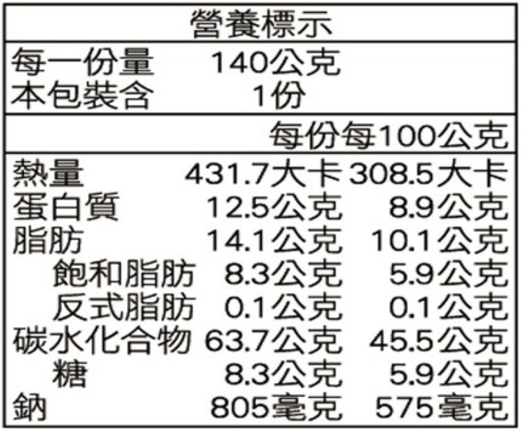 | 過敏源註記 | 過敏原:本產品含有含麩質之穀物、奶類、蛋、大豆,本產品與其它含有芝麻、堅果、蕎種子類、花生、魚的產品於同一工廠生產、食品過敏者請留意。 |