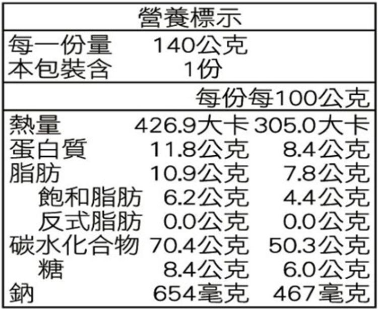 | 過敏源註記 | 過敏原:本產品含有含麩質之穀物、蛋、大豆、芝麻,本產品與其它含有奶類、堅果、蕎麥、種子類、花生、魚的產品於同一工廠生產,食品過敏者請留意。 |