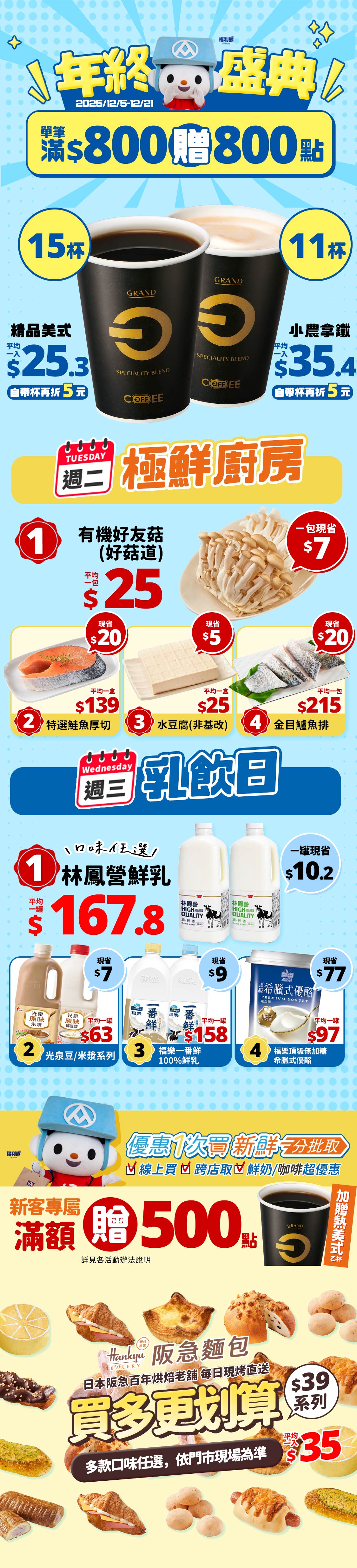 12/10-12/14新客專屬雙12加碼滿$500加贈300福利點(含原滿$399贈500點機制共可得800福利點)。